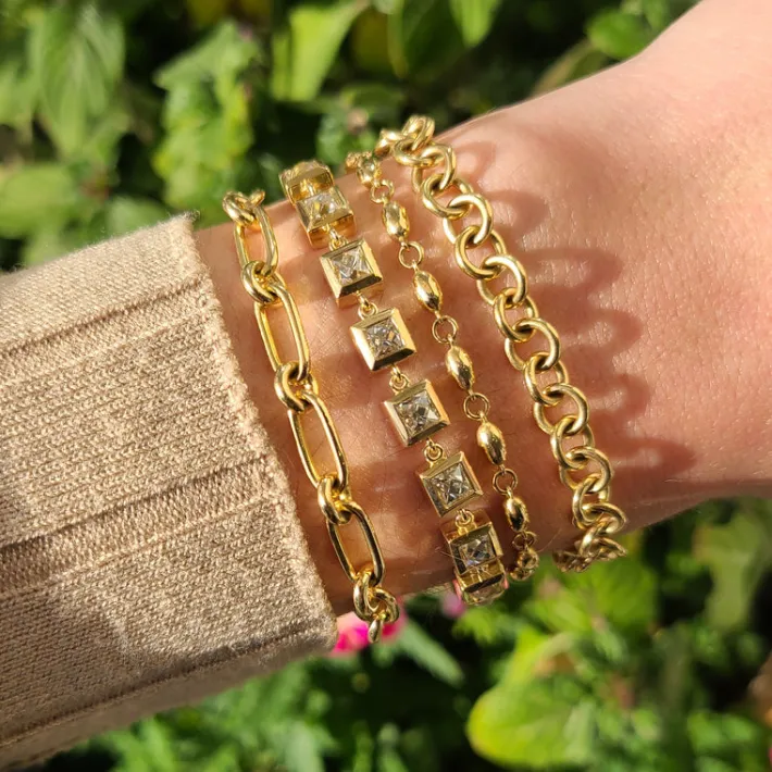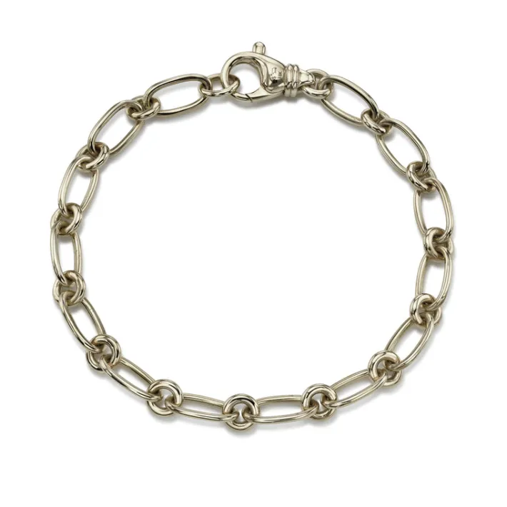 Handcrafted 18K gold oval and round link bracelet. Bracelet measures 7.5″.Please inquire for additional customization.