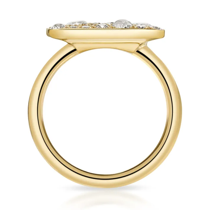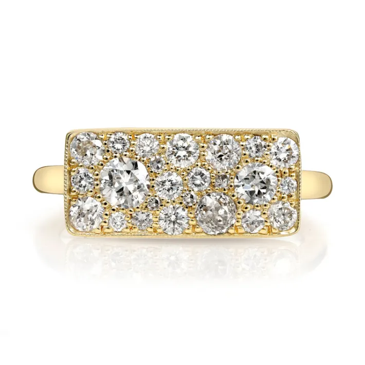 0.95ctw various old cut and round brilliant cut diamonds set in a handcrafted 18K yellow gold mounting. Price may vary according to total diamond weight.