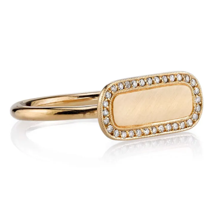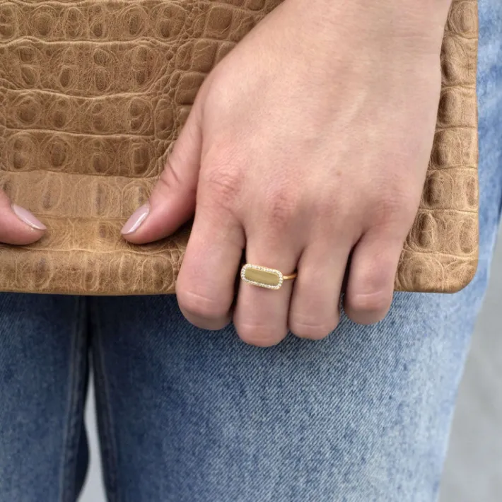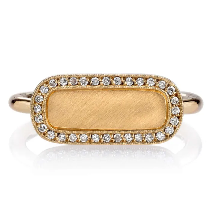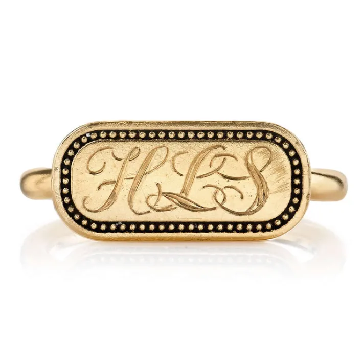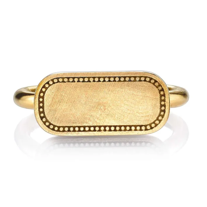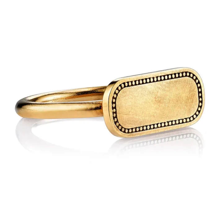 Vintage inspired 18K gold bar ring. A modern take on the classic signet ring. Make it personal!