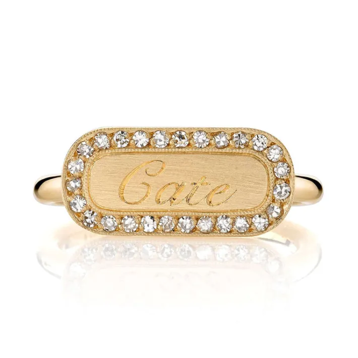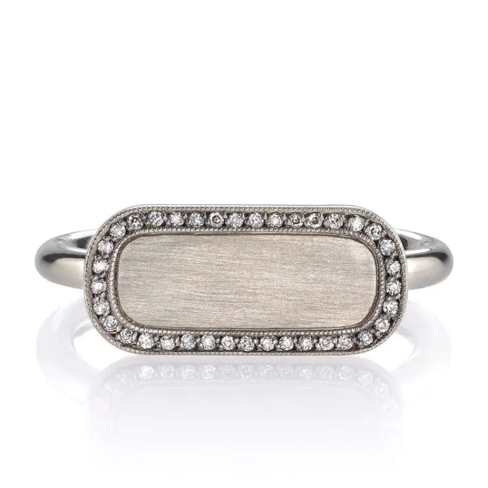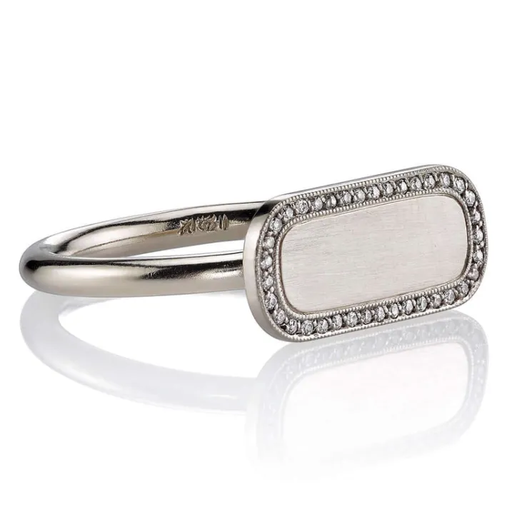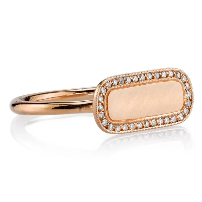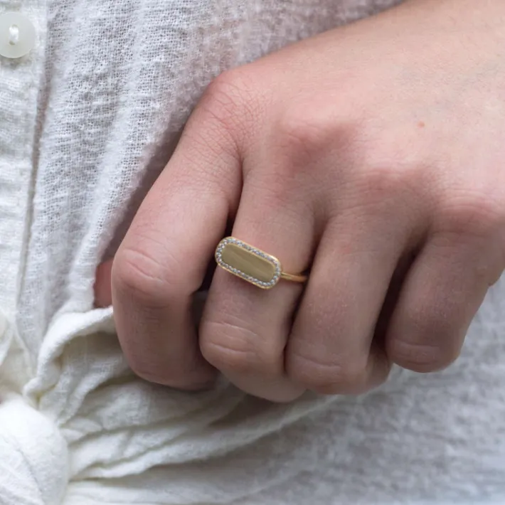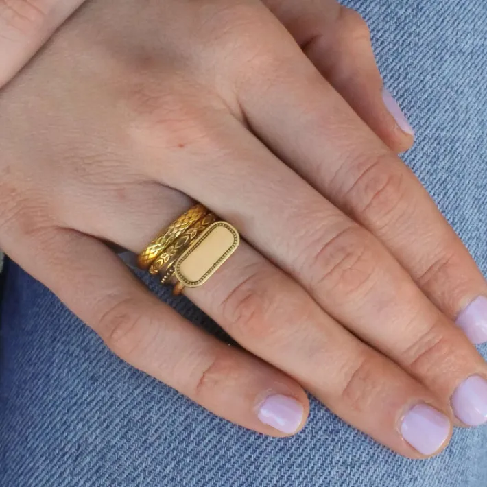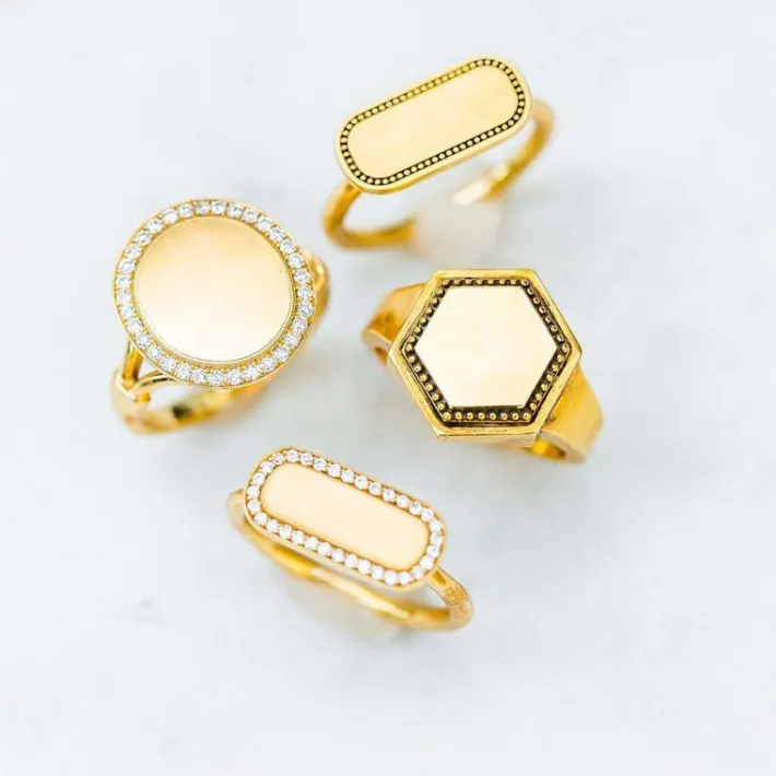 Vintage inspired 18K gold bar ring. A modern take on the classic signet ring. Make it personal!