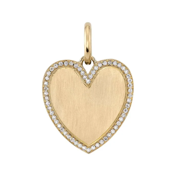 Approximately 0.25ctw old European cut diamonds pavé set in a handcrafted 18K yellow gold heart shaped pendant.