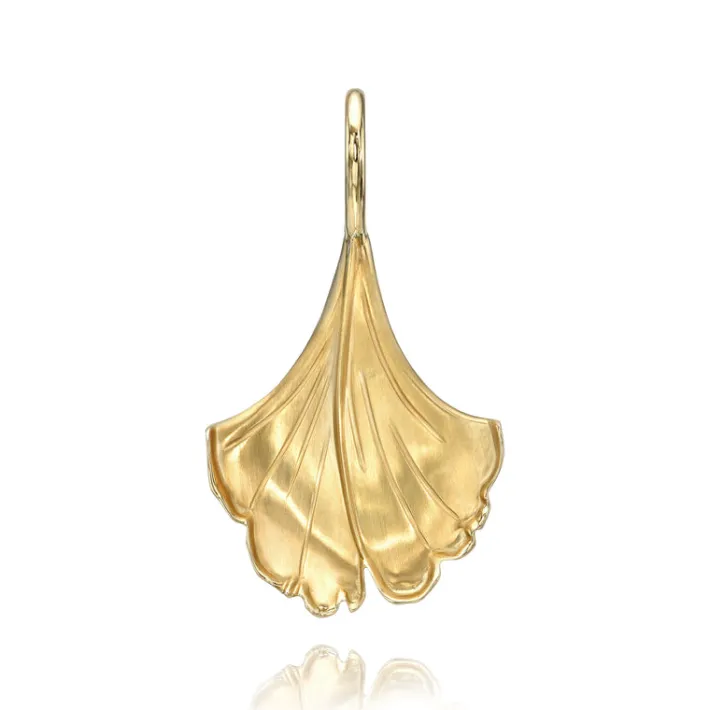 Handcrafted 18K yellow gold ginko leaf shaped pendant.