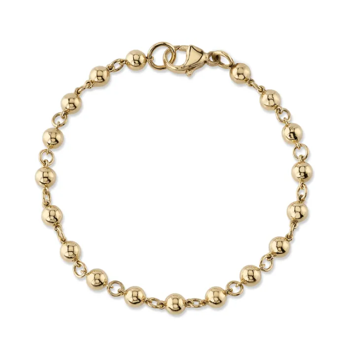 Handcrafted 18K yellow gold large rosary bead bracelet. Beads measure 5mm.