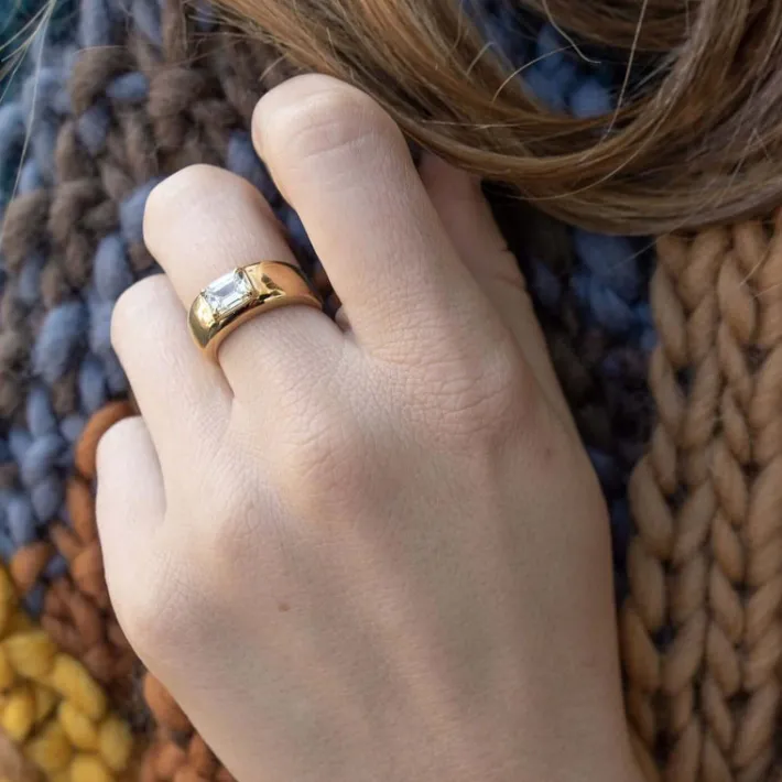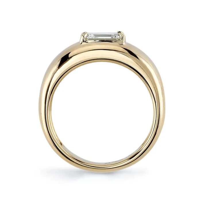 1.00ct U-V/SI1 GIA certified emerald cut diamond set in a handcrafted 18K yellow gold dome mounting.