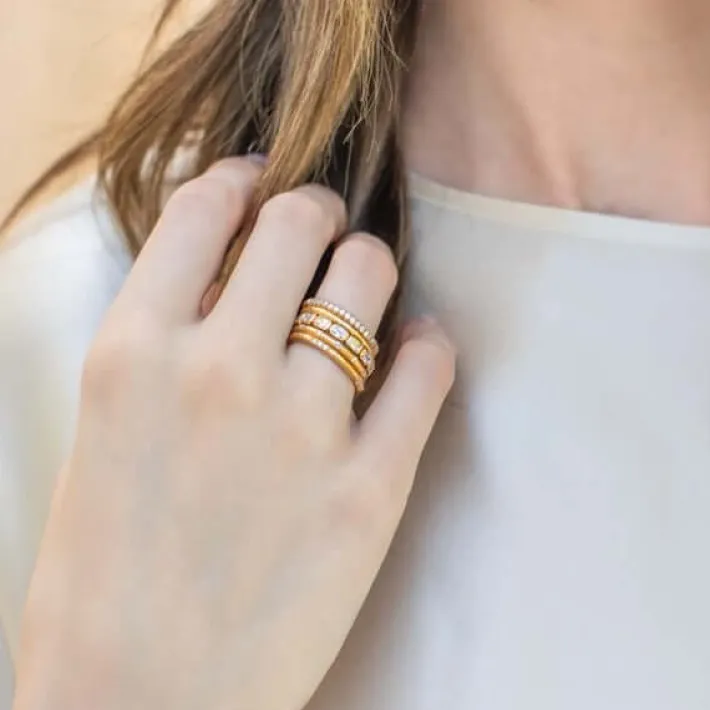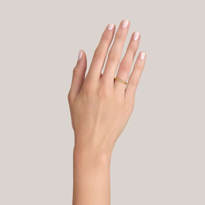 Approximately 0.14ctw G-H/VS old European cut diamonds set in a handcrafted hammered 22K yellow gold band.