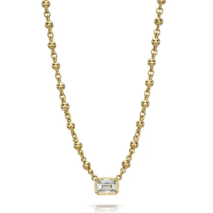 1.04ct M/VS1 GIA certified emerald cut diamond prong set on our handcrafted 18K yellow gold Rosary chain.