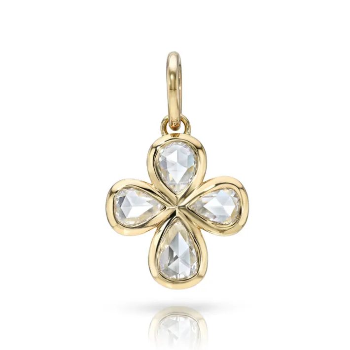 1.89ctw H-I/VS-SI pear-shaped rose cut diamonds bezel set in a handcrafted 18K yellow gold pendant.Price does not includ…