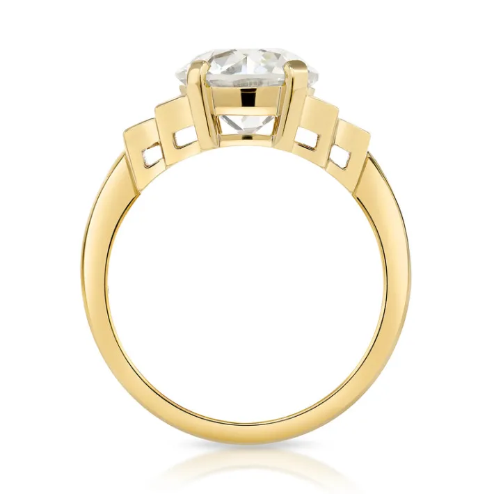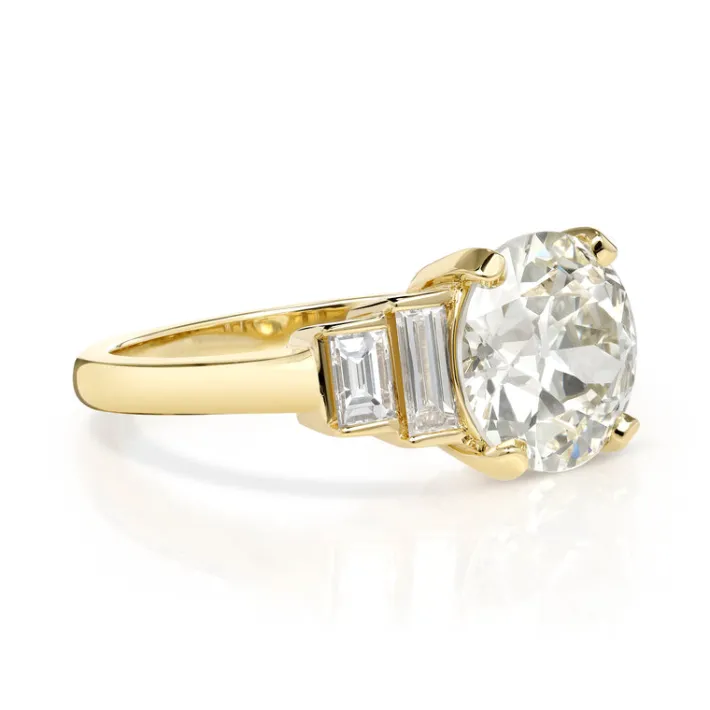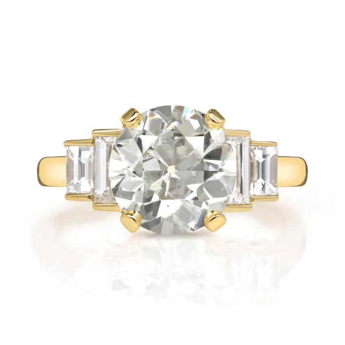 2.41ct N/VS1 GIA certified old European cut diamond with 0.39ctw baguette cut accent diamonds set in a handcrafted 18K yellow gold mounting.