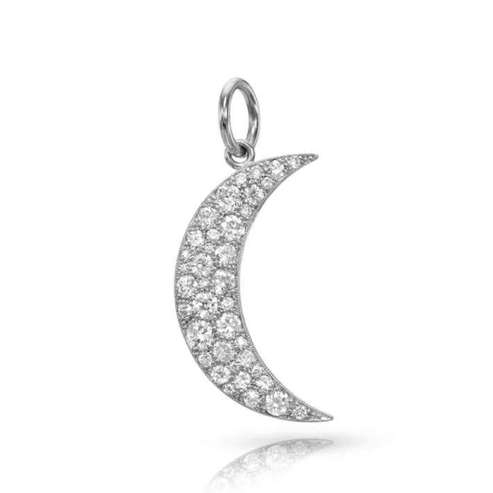Approximately 1.60ctw varying old cut and round brilliant cut diamonds set in a handcrafted platinum crescent moon-shaped pendant.