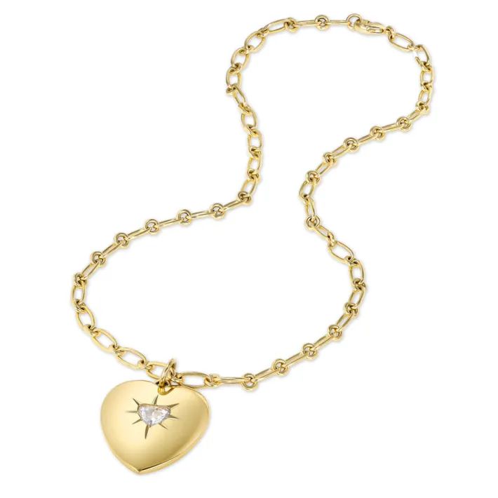 1.52ct I/I1 GIA certified heart shaped rose cut diamond prong set in a handcrafted high polish 18k yellow gold heart shaped pendant.