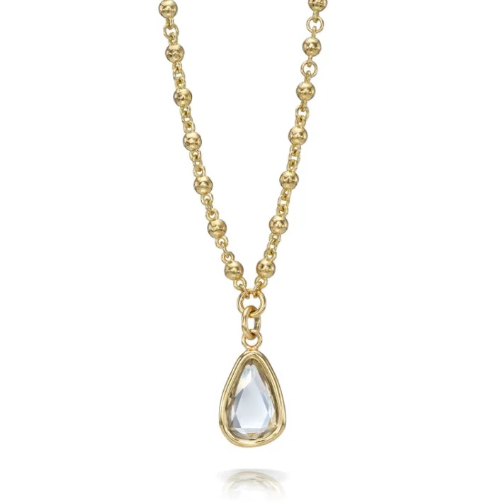 2.39ct N/I1 GIA certified vintage pear shaped rose cut diamond bezel set on our handcrafted 18K yellow gold Rosary chain.