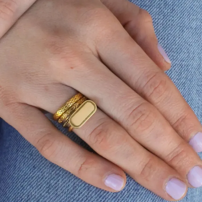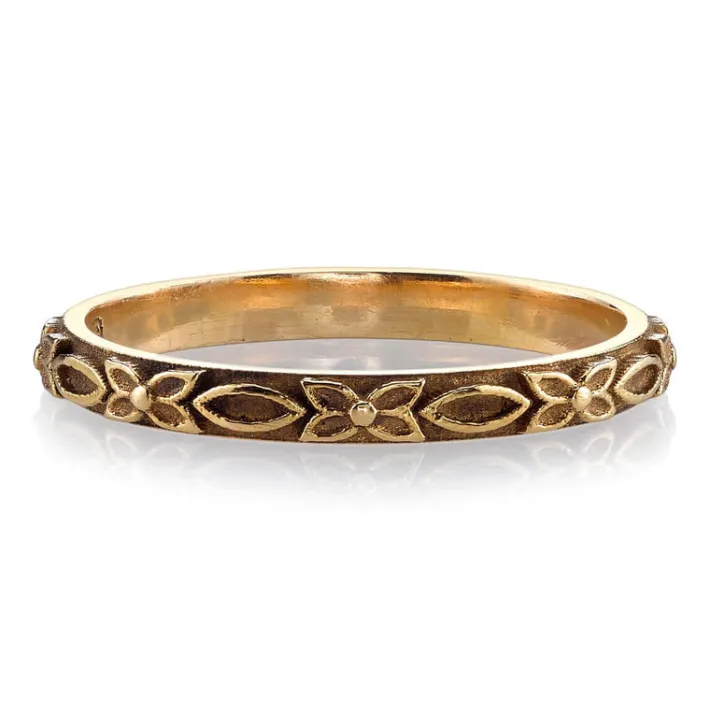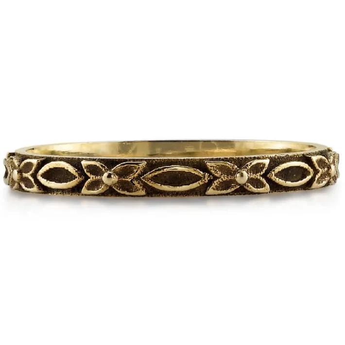 Handcrafted oxidized 18K gold ladies’ band.