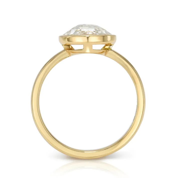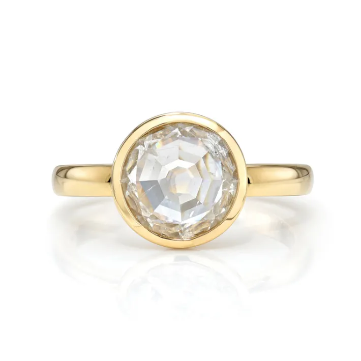 1.73ct G/I2 GIA certified round rose cut diamond bezel set in a handcrafted 18K yellow gold mounting.